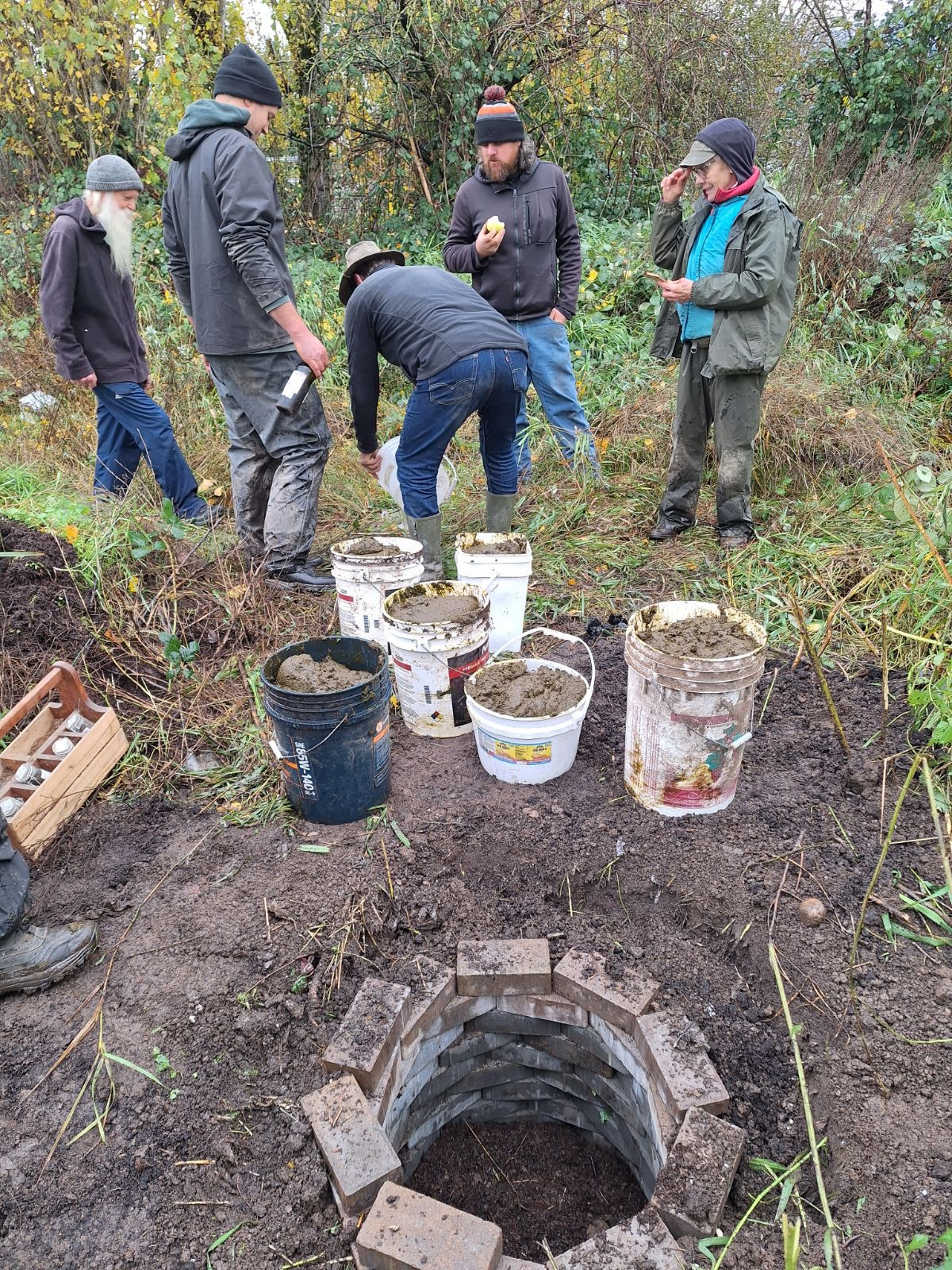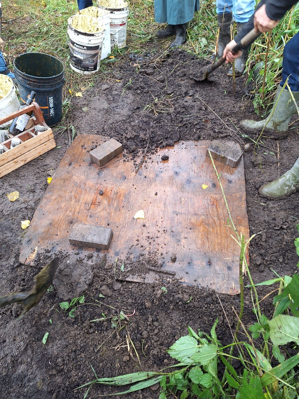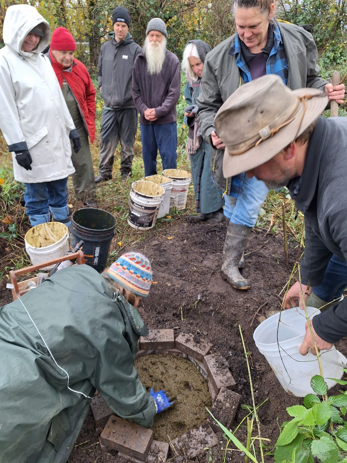 In October, we make biodynamic preperations and bury them including: 500, 502, 503, 504, & 505. We dig out some 501 & 506 and share a potluck meal together.