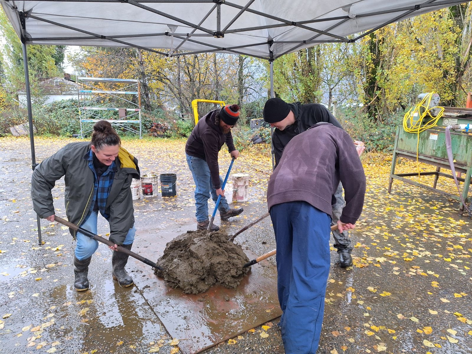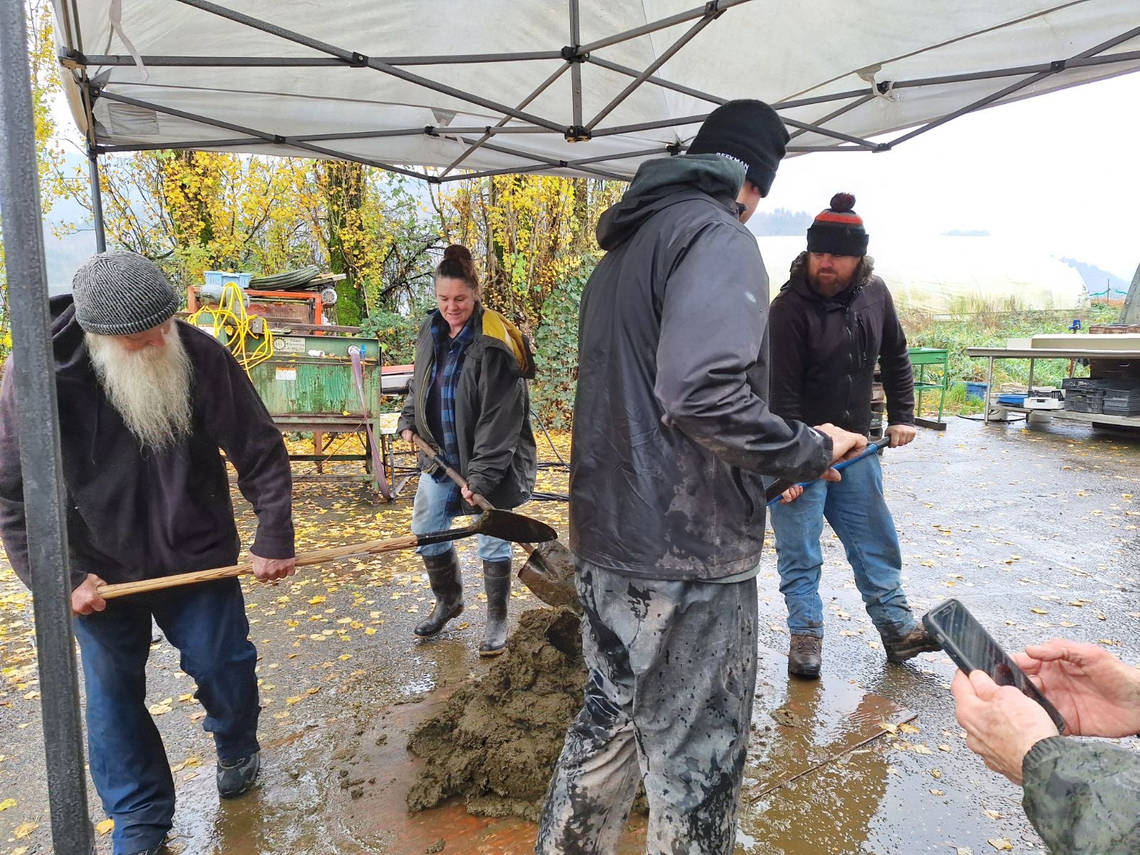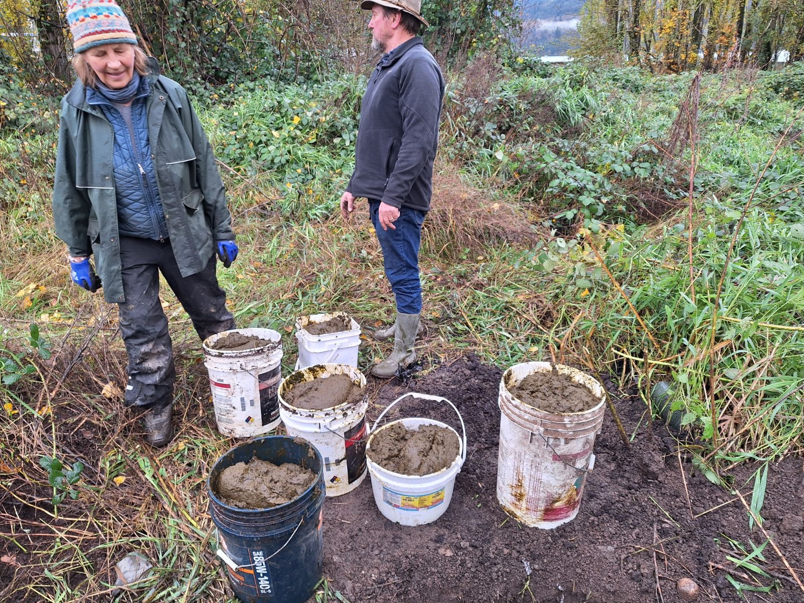 In October, we make biodynamic preperations and bury them including: 500, 502, 503, 504, & 505. We dig out some 501 & 506 and share a potluck meal together.